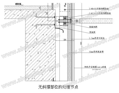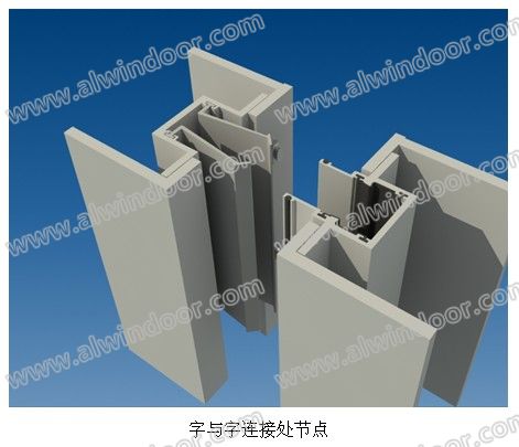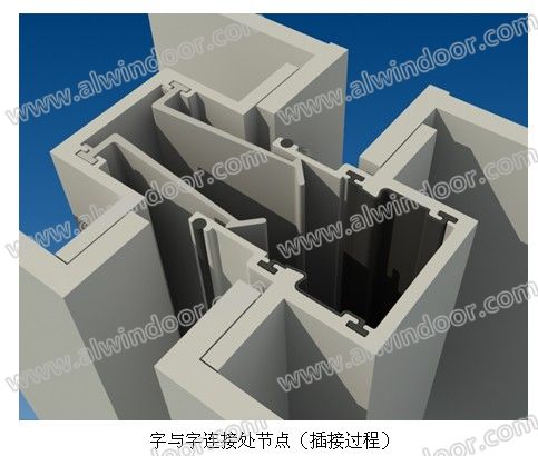 ①.通過兩個對插的型材連接(插接的兩個型材肋板)來抵御垂直與字幕墻面水平風荷;