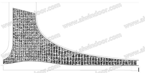 B.字的個數的控制:本工程將整篆體字幕墻的不同字的個數控(詞條“數控”由行業大百科提供)制在48個,整個面的字的排版就在這48個字內無規則變換,這樣既保證了實際工程中字體加工的通用性(可有效的縮短工期,提高加工效率),又使得整個字幕墻面的文字瀟灑隨意,毫無規律;