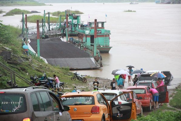 6、老撾到泰國的擺渡船:如果不是越野車,那么在上渡輪的時候一定必須肯定絕對要聽從泰國船工的指揮,因為渡輪和地面并沒有結合在一起,并且有很多大車碾壓過后的痕跡,很容易刮傷汽車的底盤,甚至造成更嚴重的后果。