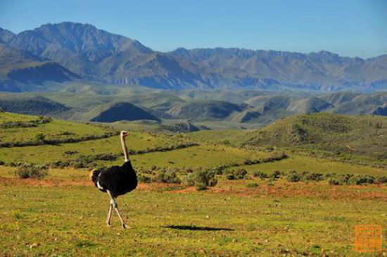 走進鴕鳥農莊 我們入住的鴕鳥莊園位于奧茨霍恩郊區,而奧茨霍恩是全世界有名的鴕鳥之都。參觀鴕鳥農場,當然是不可錯過的精彩節目。在奧茨霍恩周邊,有大大小小一百多個鴕鳥農場,汽車沿著公路走過時,我們看到的不是成群的牛羊,取而代之的是黑色、褐色的鴕鳥,這是南非獨有的田園景色。