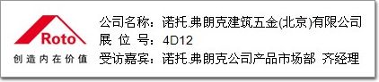 齊經理:門窗市場的發展趨勢是節能、舒適和美觀,中國市場對此類高端產品的需求變得越來越突出,諾托將繼續在高端定位的基礎上,強化“German Made”的品質保障,相信在2014年會繼續取得成功。