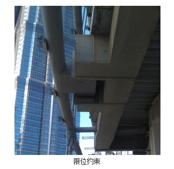 限位約束構造設置于幕墻與樓面相切處,為幕墻提供扭轉約束并允許幕墻相對主樓上下自由運動。