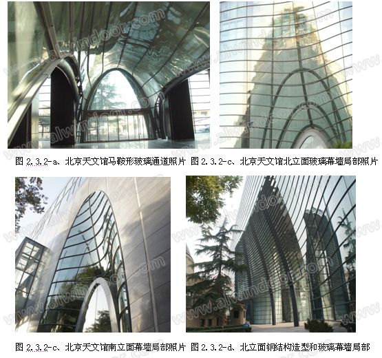 (1)、北京天文館新館雙曲面板中空玻璃異形幕墻就是典型的雙曲面玻璃幕墻。建筑的正立面(北立面)有三分之一是雙曲下凹面,在建筑物中部設(shè)置了一個(gè)由曲形鋼結(jié)構(gòu)支撐用360片不同尺寸、不同規(guī)格的雙曲面熱彎夾膠玻璃拼接而成的馬鞍形玻璃通道。貫穿整個(gè)建筑,將北立面的玻璃幕墻和南立面的石材、玻璃幕墻連接。南立面的出入通道是在大面積的黑色石材幕墻面的中部采用了下凹的雙曲面石材和雙曲面玻璃結(jié)合構(gòu)成的異形面。