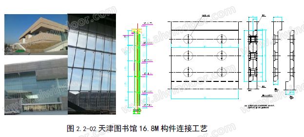 由于該工程施工時解決了近30m構件運輸半徑問題,未采用該工藝。但是各項試驗證明這種設計是創新和有效的。圖2.2-02 中反映了天津圖書館超長 16.825 M構件,采用類似“裝配式”連接工藝的另一個成功案例。通過采用該裝配工藝實現了超長構件完全工廠化制造,提高直線度,并有效減少場實施焊接工作量。