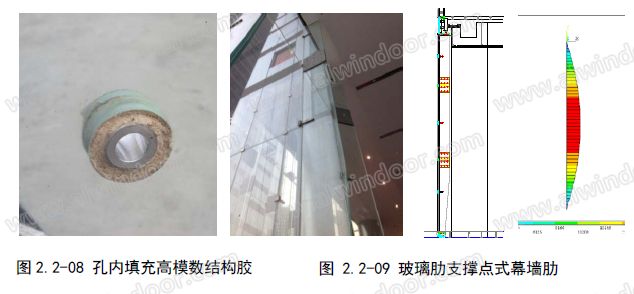圖2.2-07、07A 展示了“浦東圖書館”反吊空中花園吊掛結構玻璃和蘇州博覽中心裝飾翼: 玻璃作為通透結構構件,遵循以下設計原則:玻璃作為碎性材料,需要嚴格控制孔邊應力: