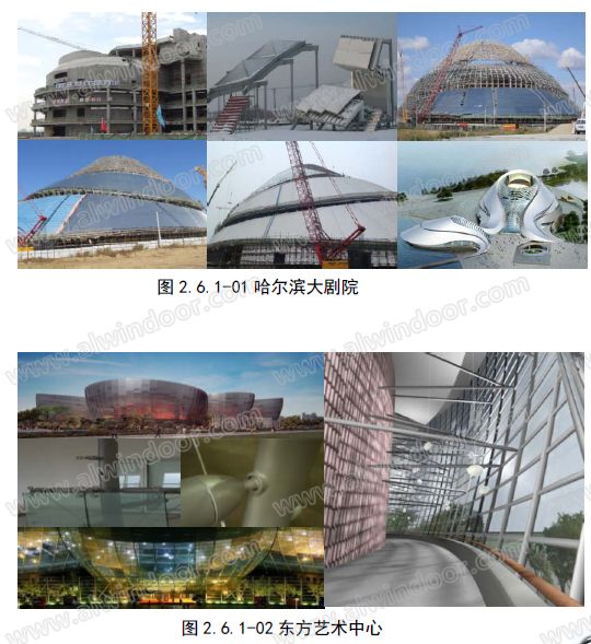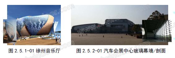 文化類建筑普遍采用鋼結構支撐外皮,為此,一方面要適應主體變形(如“沈陽藝術中心”);另一方面,往往由于大跨鋼結構與外皮集成,要采用“一體化設計”,提高綜合性能和美觀度。如圖2.6.1-01、2.6.1-02,展示了鋼結構與外皮一體化設計的例子。