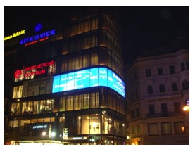 都市中的高樓大廈是非常理想的戶外廣告載體,人們通過LED、激光、投影等各種技術手段,設法讓整幢大樓變成一個立體的光電廣告載體,這種技術被稱為“建筑媒體”技術,近幾年在歐美開始流行。與此同時,我們又認識到,現代都市的大樓特別是新建的大樓,玻璃幕墻結構占絕大部分,如何將這些玻璃幕墻大樓變成“建筑媒體”,發揮它的商業價值,是當前一個很熱門的技術課題,它需要解決的技術難題有:(1)避免破壞玻璃幕墻外觀及結構;(2)保持玻璃幕墻的通透性;(3)讓建筑媒體的表現力達到最強。