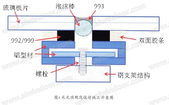 解決方案:為了避免上述問題的發生,在工程開始之前我們就必須進行規范設計,圖4是一種采光頂規范設計施工示意圖。先采用992/999結構膠把玻璃板片粘結在鋁材上,然后通過螺釘把鋁材固定在鋼支架結構上,在板片之間填充泡沫棒,最后進行993耐候密封膠施工,F在采光頂的施工應當按照JGJ255-2O12《采光頂與金屬屋面技術規程》執行。硅酮結構密封膠施工時的厚度和寬度按照“6.7硅酮結構密封膠”進行計算;玻璃板片之間的接縫應當滿足“7.2玻璃采光頂”,板縫寬度不宜小于1Omm,在接縫變形較大時,應采用位移能力較高的中性硅酮密封膠。同時,針對現場的施工工藝流程,還應該滿足一般幕墻施工的操作規范,確保密封膠的產品性能!就辍