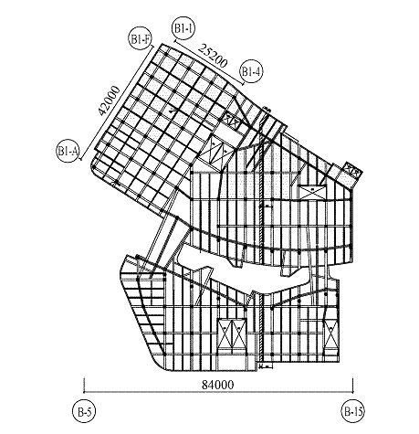 本建筑鄰近中庭兩側均布置斜柱,各結構單元內斜柱占所有柱子比例均小于12%。在正常使用狀態下,各單元的斜柱拉梁拉力均小于100kN。經過核算,與不考慮梁受拉裂縫(詞條“裂縫”由行業大百科提供)驗算相比,為滿足斜柱拉梁裂縫要求,需要增加鋼筋用量10%左右。