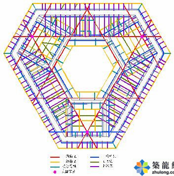 2、頂模鋼平臺桁架的布置要既有利于系統(tǒng)受力安全,又能盡可能少影響鋼結(jié)構(gòu)的安裝。