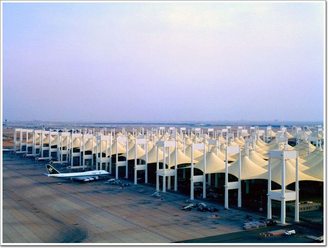 沙特阿拉伯的吉達機場是世界最大的帳篷建筑群之一,其中的航站樓—朝覲航廈是一座專門用于接待往來朝覲者的國際航站樓。