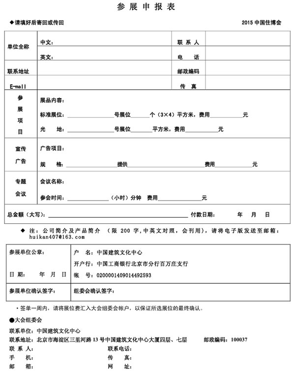 為了深入貫徹黨的十八大和十八屆三中全會精神,加快轉變經濟發(fā)展方式,建設資源節(jié)約和環(huán)境友好型社會,加強住宅產業(yè)方面的國際交流,充分展示國內外住宅節(jié)能、節(jié)地、節(jié)水、節(jié)材、環(huán)保的最新科學技術成果和建筑工業(yè)化(詞條“建筑工業(yè)化”由行業(yè)大百科提供)產品與技術發(fā)展趨勢,住房和城鄉(xiāng)建設部科技與產業(yè)化發(fā)展中心(住房和城鄉(xiāng)建設部住宅產業(yè)化促進中心)、中國房地產業(yè)協(xié)會、中國建筑文化中心和北京市住房和城鄉(xiāng)建設委員會將于2015年9月9~11日在中國國際展覽中心(新館)舉辦“第十四屆中國國際住宅產業(yè)暨建筑工業(yè)化產品與設備(詞條“設備”由行業(yè)大百科提供)博覽會”(簡稱“中國住博會”)。