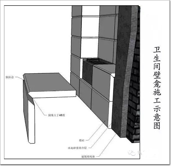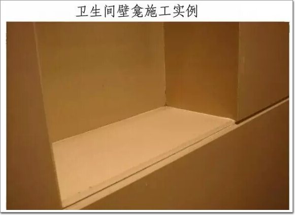 9、衛生間壁龕施工:高度按墻面石材或瓷磚排版而定,高度應于橫縫跟平,并做與橫縫相同的倒角或凹槽。