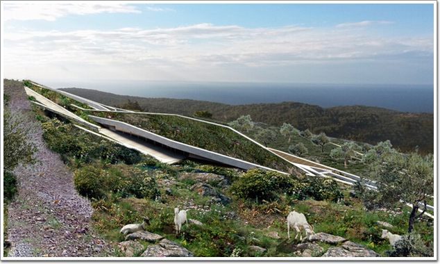 最佳未來建筑獎:希臘山丘小屋。山丘小屋坐落于維斯島的斜坡上,小屋建造在山壁內,靈感來源于洞穴和石窟。