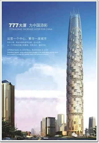 777大廈是青島偉業集團旗下九天投資有限公司斥資100億元人民幣,鼎力營建的世界級地標性建筑,建筑高度擬在700米以上,項目位于青島開發區,總建筑面積55萬平方米,致力打造中國第一高樓,其建筑功能包括:頂級寫字樓、酒店式公寓、頂層觀光廳、金融中心裙樓等,項目將于2015年交付使用。