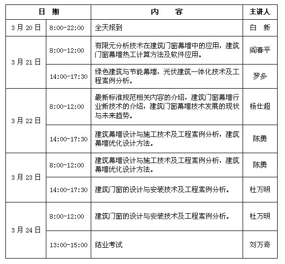第20期全國建筑門窗幕墻技術培訓班日程安排