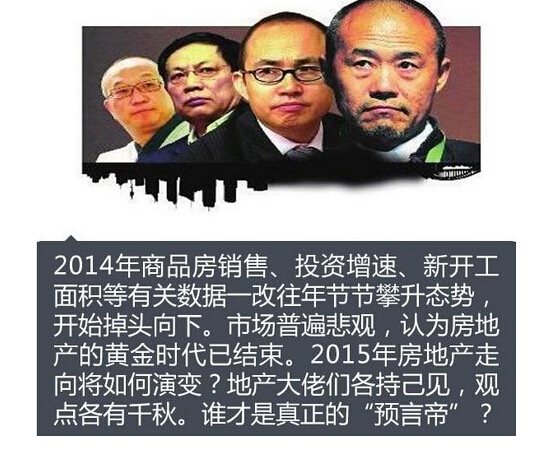 房地產業已經從高峰逐漸進入下行通道的大趨勢,2015年房價將維持在一個平穩的狀態,但是銷量會有上升,房企去庫存、增加銷量會成為2015年的一個主旋律。2014年恒大地產就是以價換量,2015年還會堅持這個大的方向。只有這樣,我們才能度過現在這個寒冬。