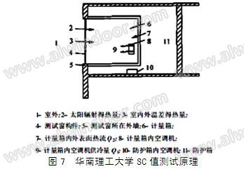 基于建筑門窗遮陽性能測試方法發展趨勢,國內相關研究人員也進行了大量研究。2002年,華南理工大學的孟慶林等采用動態防護熱箱法,對廣州地區某居住建筑頂層房間西向外窗的熱阻R和遮陽系數SC進行了現場測試。采用動態測量方法可以滿足夏季室外熱擾量劇烈變化,室內、外傳遞為非穩態傳熱情況下的測試需求,見圖7。