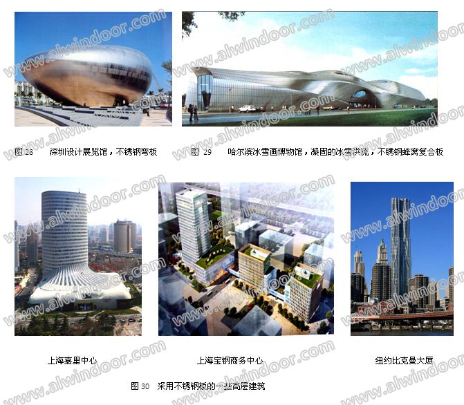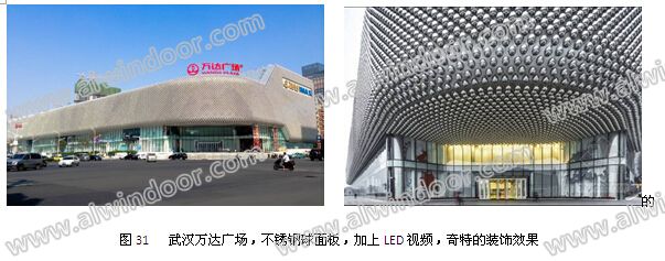 除了原有的鋁板和彩色鋼板以外,不銹鋼板、銅板幕墻也用在公共建筑幕墻中(圖28 ~圖33)。
