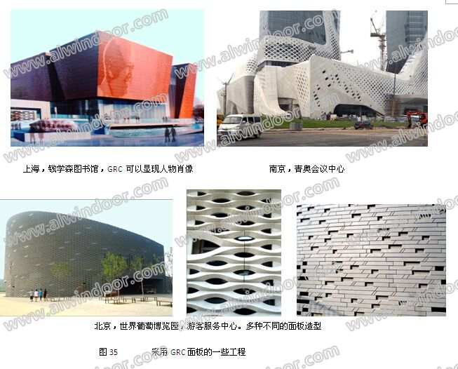 我國早在1960年代就進行了GRC 結構的研究工作,但是當時玻璃絲的耐堿問題沒有解決,所以GRC在工程中沒有廣泛應用。由于耐堿玻璃的出現,為GRC制品的推廣應用開闊了前景。GRC可以有各種顏色,表面可以做成各種花紋和造型,可以鍍上金屬顏色,因而可以滿足建筑師的種種要求。
