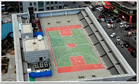遼寧沈陽,在沈陽一近20層的高層建筑上,一個(gè)建好的籃球場吸引附近高層建筑上居住的市民注意。這個(gè)和正規(guī)籃球場一樣大小的天臺(tái)籃球場為一單位所建,為豐富員工業(yè)余文化生活。