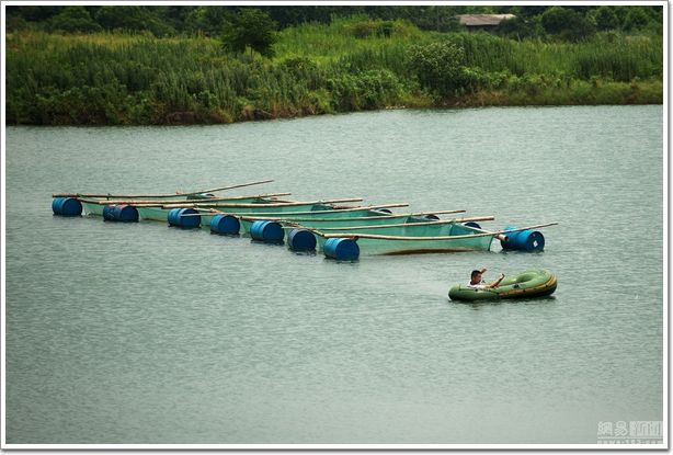 2015 年6月30日,湖南長沙望城區大澤湖街道回龍村“遠大天空城市”工地基坑里,村民王進先正在往返搬運水泥磚以固定網箱。2015年3月,迫于生計,王進先投資2萬多元,在這個大水塘里養起了桂魚。2012年10月,他家的二畝地被每畝47528元的價格征收。這個驚動全國上下的項目“第一高樓”項目,并未如期完成,讓當地村民太多期待幾乎化為泡影。