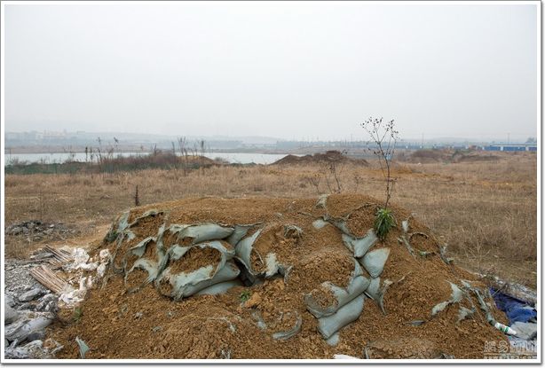 望城區大澤湖街道回龍村“遠大天空城市”工地東北角的一堆塑料紡織袋已自然天裂。這堆泥土是2012年進行地質勘探時的遺留物,已在原地駐足了三個年頭。“這好像是在給世界開個玩笑。”7月6日,附近一位居民指著水坑告訴前來采訪的記者。