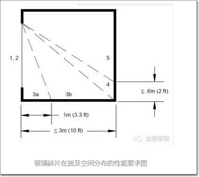 玻璃破裂,碎片落入波及空間,并撞擊到離窗戶距離不超過10英尺、距地面高度不超過2英尺的豎直測試擋板。 |