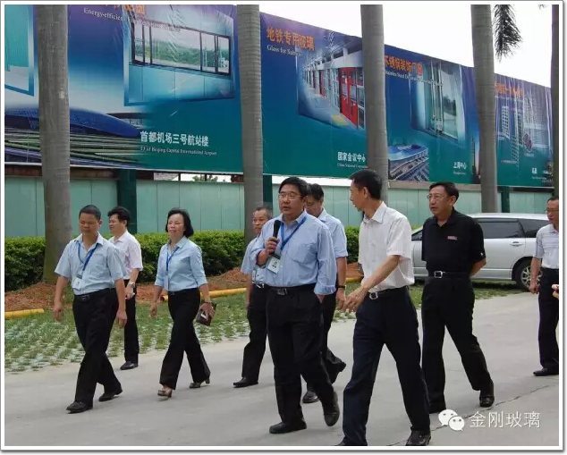 在莊董事長的陪同下,來賓們首先參觀了生產車間,參觀過程中,莊董事長向來訪的來賓們詳細介紹了金剛玻璃的生產加工工藝流程。