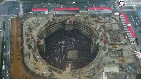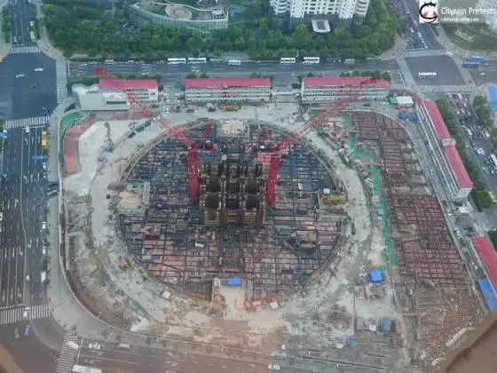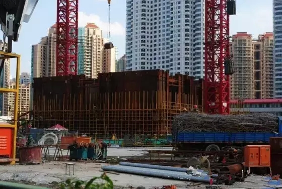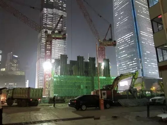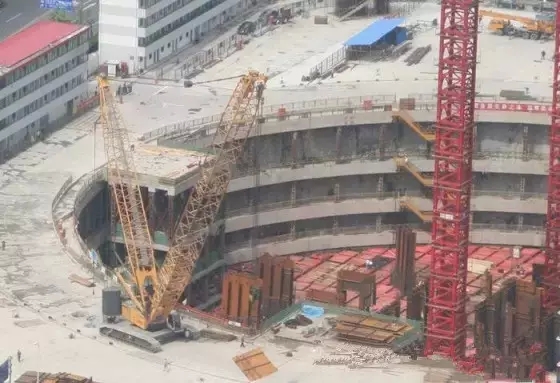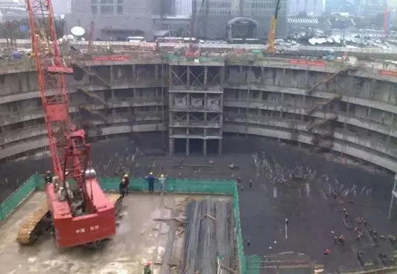 正在初步進入動工階段的上海中心大廈施工現場,本工程塔樓基坑開挖深度為31.10m,采用明挖順作法的基坑施工方法。