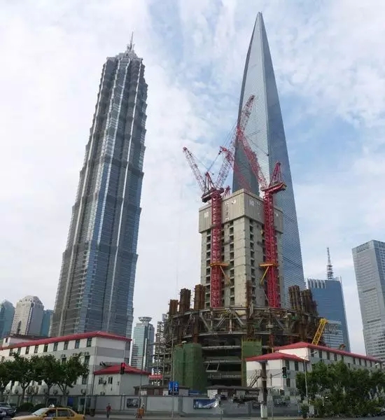 上海中心大廈在樁基施工、基坑開挖、混凝土建筑與泵送、旋轉收分的玻璃幕墻安裝等方面,研發出多項具有世界先進水平的新工藝和新技術,其中用于主樓核心筒結構施工中的鋼平臺整體液壓爬升體系,使得主樓核心筒結構創出3天一層的先進水平。