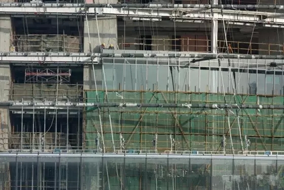 立體感超強的外觀玻璃幕墻正在加緊安裝中