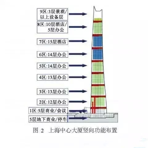 上海塔依靠3個相互連接的系統保持直立。第一個系統是90英尺×90英尺(約合27米×27米)的鋼筋混凝土芯柱,提供垂直支撐力。