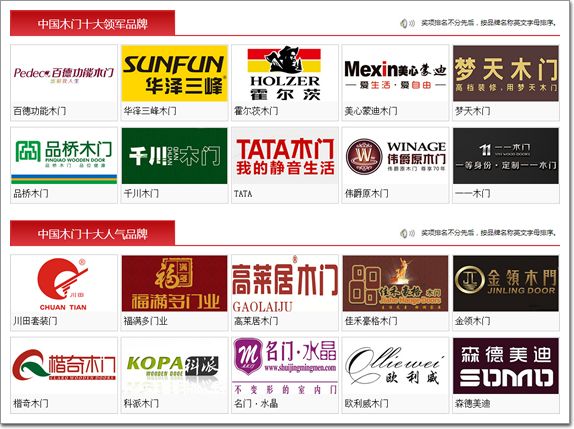 中國木門十大人氣品牌