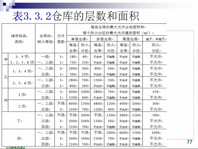 3.3.2 倉庫的層數(shù)和面積除本規(guī)范另有規(guī)定者外,應(yīng)符合表3.3.2的規(guī)定。 (刪除“耐火等級”)