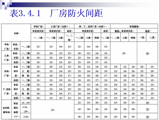 3.4.1 除本規(guī)范另有規(guī)定外,廠房之間及與乙