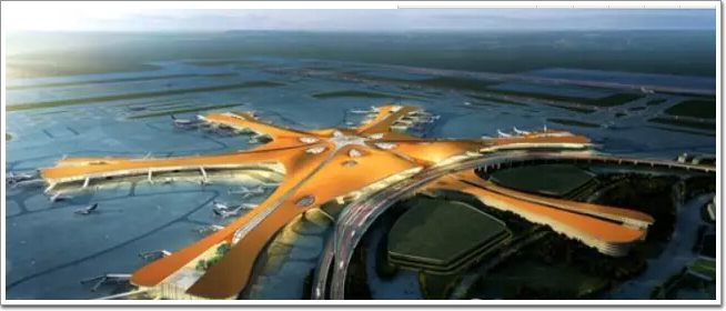 閑言少敘,看過當年的首都國際機場,已經把調子定得那么高,如今的新機場——大興國際機場會是怎樣的效果呢?會運用哪些新技術呢?會有哪家幕墻公司中標呢?小編也充滿好奇,咱們接著往下看,先看看機場的鳥瞰圖吧!
