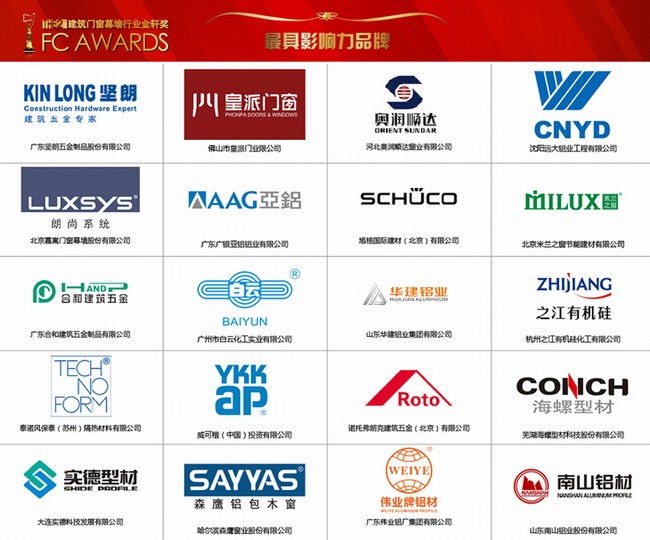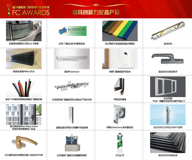 以下是最具創(chuàng)新力門窗幕墻系統(tǒng)獎項的部分企業(yè)名單: