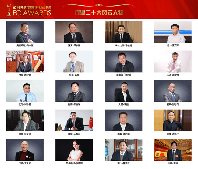 以下是獲得行業(yè)二十大風云人物部分獎項的人物的名單: