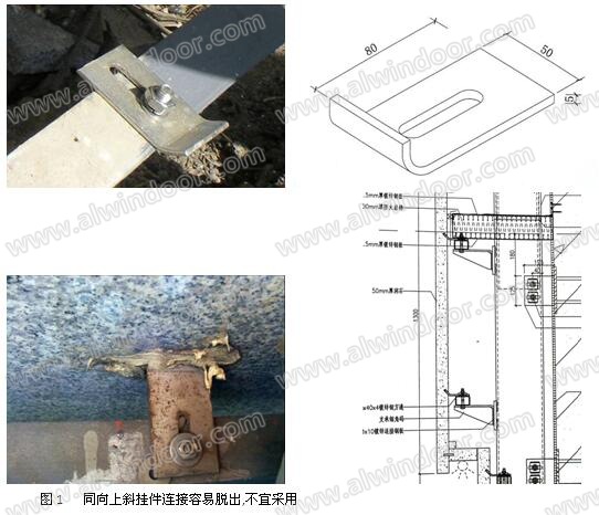 斜鉤入槽深度很淺,施工稍有偏差,掛件就有可能沒有進槽,脫出槽口外;