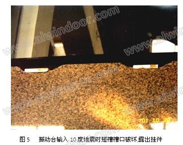但是正如振動臺試驗表明那樣,與背栓連接相比,短槽連接要稍弱一些。到10度地震力輸入時,短槽槽口發生破壞,而此時背拴連接完好無損(圖5)。