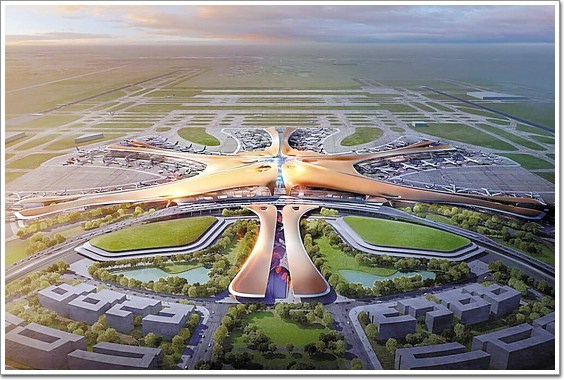 京新機(jī)場又稱北京大興國際機(jī)場、北京首都第二機(jī)場,未來將成為世界最大的空港。新的一號航站樓設(shè)計(jì)為輻射狀,目的在于減少乘客的換乘距離,盡管從一端到另一端還是超過了1公里。哈迪德最標(biāo)志性的設(shè)計(jì)或許是平滑起伏的屋頂外觀。