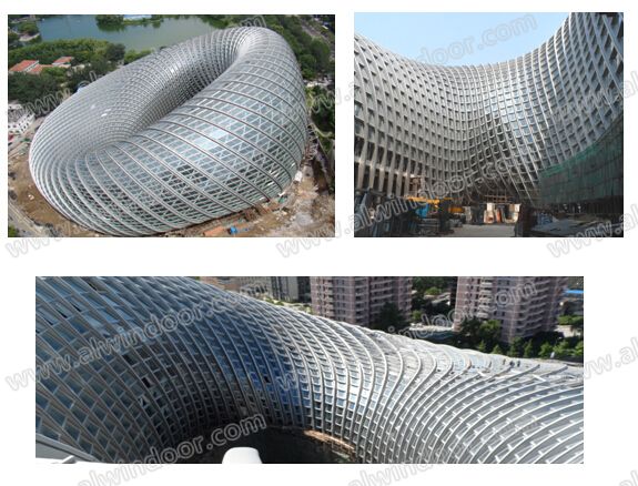 單曲面弧形面板,可以通過各種組合方式而形成曲面異形建筑幕墻。