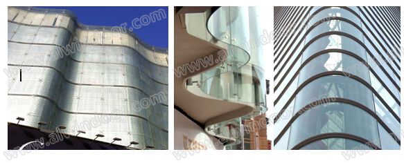 2.2.1、單曲面弧形面板的特點:適用范圍廣,面板曲面弧形成型較容易;對幕墻的支承結構體系一般沒有特殊的要求。常用的面板材料有玻璃、金屬板、GRC板、石材和各種人造板材。適用于各種弧形幕墻及單曲面的藝術造型;同時也適用于曲面度變化不大的雙曲面異形幕墻;對于選用玻璃材料的單曲弧形面板可以實現鋼化加工來提高面板的強度提高安全性。