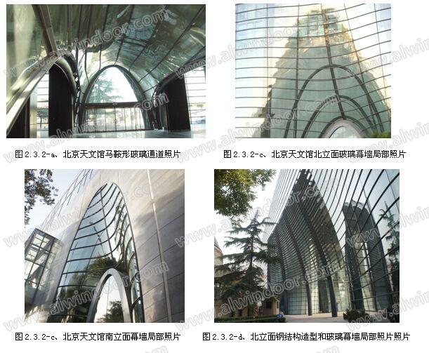 (1)、北京天文館新館雙曲面板中空玻璃異形幕墻就是典型的雙曲面玻璃幕墻。建筑的正立面(北立面)有三分之一是雙曲下凹面,在建筑物中部設置了一個由曲形鋼結構支撐用360片不同尺寸、不同規格的雙曲面熱彎夾膠玻璃(詞條“熱彎夾膠玻璃”由行業大百科提供)拼接而成的馬鞍形玻璃通道。貫穿整個建筑,將北立面的玻璃幕墻和南立面的石材、玻璃幕墻連接。南立面的出入通道是在大面積的黑色石材幕墻面的中部采用了下凹的雙曲面石材和雙曲面玻璃結合構成的異形面。