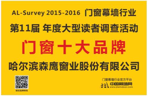頒獎儀式上,協會領導分別為獲得“用戶選擇獎”、“市場表現獎”、“十大品牌”的系統門窗、建筑膠、設備、隔熱條企業、建筑玻璃、型材和五金配件企業,以及“我最喜愛幕墻工程”獎的工程項目和承建該工程的企業頒發獎牌。哈爾濱森鷹窗業股份有限公司在入圍的眾多系統門窗企業中,以總票數7255票的優異成績,獲得“門窗十大品牌”榮譽。