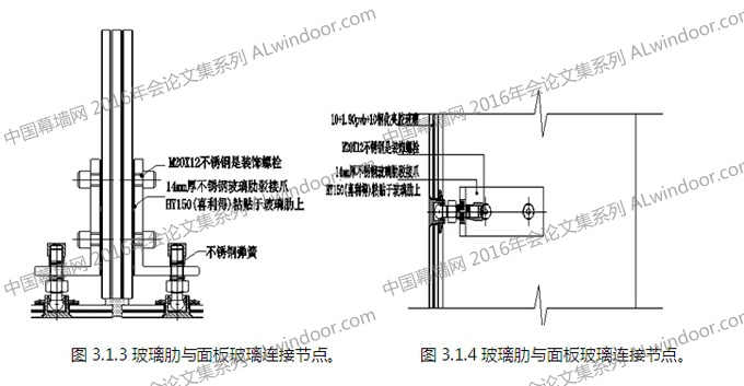 根據實際工程的情況看,海口某商場玻璃肋支承的點支式玻璃幕墻雖采用鋼化夾層玻璃,但在此次超強臺風的作用下仍出現了整體塌落;菲律賓馬尼拉某大廈的玻璃肋支承的點支承玻璃幕墻在臺風中也出現整體坍塌的現象。這說明了這種采用拼接的玻璃肋支承的點支式玻璃幕墻只考慮了采用鋼化夾膠玻璃還不夠,還應該考慮到在夾膠玻璃同時破損的情況下玻璃肋的整體還應該保持一定的體型和穩定性。這是在臺風多發地區和易出現極限荷載狀態的地區需要關注的安全性問題。同時,在節點設計上要特別關注整體玻璃幕墻在工作狀態時變位能力和在極限狀態時的適應能力。