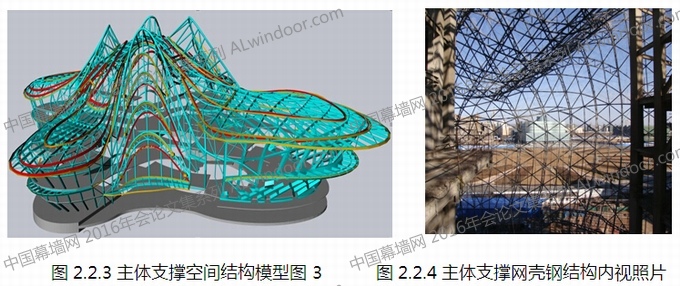 實際工程的主體支撐鋼結構,一般是一個由異型鋼管網殼和異型鋼管桁架共同組成的空間網殼結構,或由各種斷面的型鋼構成的曲面空間鋼結構(如圖2.2.1—2.2.4)。其外形及為復雜,這就容易造成在空間結構的施工中很難控制其安裝精度,常出現外形尺寸偏差較大的現象。在某項目的施工中,主體支撐空間鋼結構的外形尺寸誤差達到了加減800mm。給屋面層的施工造成了極大的困難。所以對主體空間鋼結構的外形尺寸精度的控制是保證項目主體質量的一個極其重要的環節。