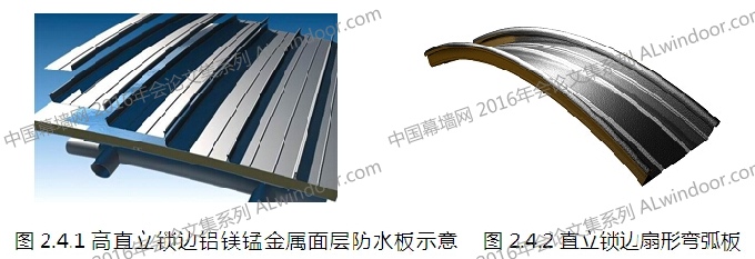 異形金屬屋面系統的外層,選用高直立鎖邊鋁鎂錳金屬面層防水板,(如圖2.4.1)在中層采用防水透氣膜,在底層采用1.5mm厚的鍍鋅鋼板做底層的防水層,用雙層防水的方案來確保屋面系統的防水性能。