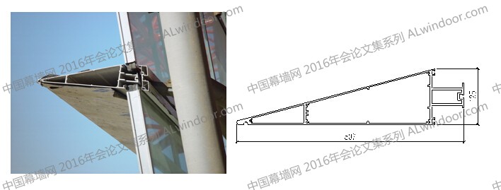 為滿足建筑使用要求,在幕墻外部設置水平遮陽板,結合幕墻的結構體系,綜合考慮之下,將橫向水平鋁合金橫梁截面(詞條“截面”由行業大百科提供)向幕墻玻璃面外延伸形成一定寬度,具有遮陽效果,同時本橫梁又作為幕墻結構體系中水平抗風桿件,從而既滿足了建筑要求,又滿足了結構受力要求,可謂是建筑與結構經典的結合。